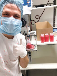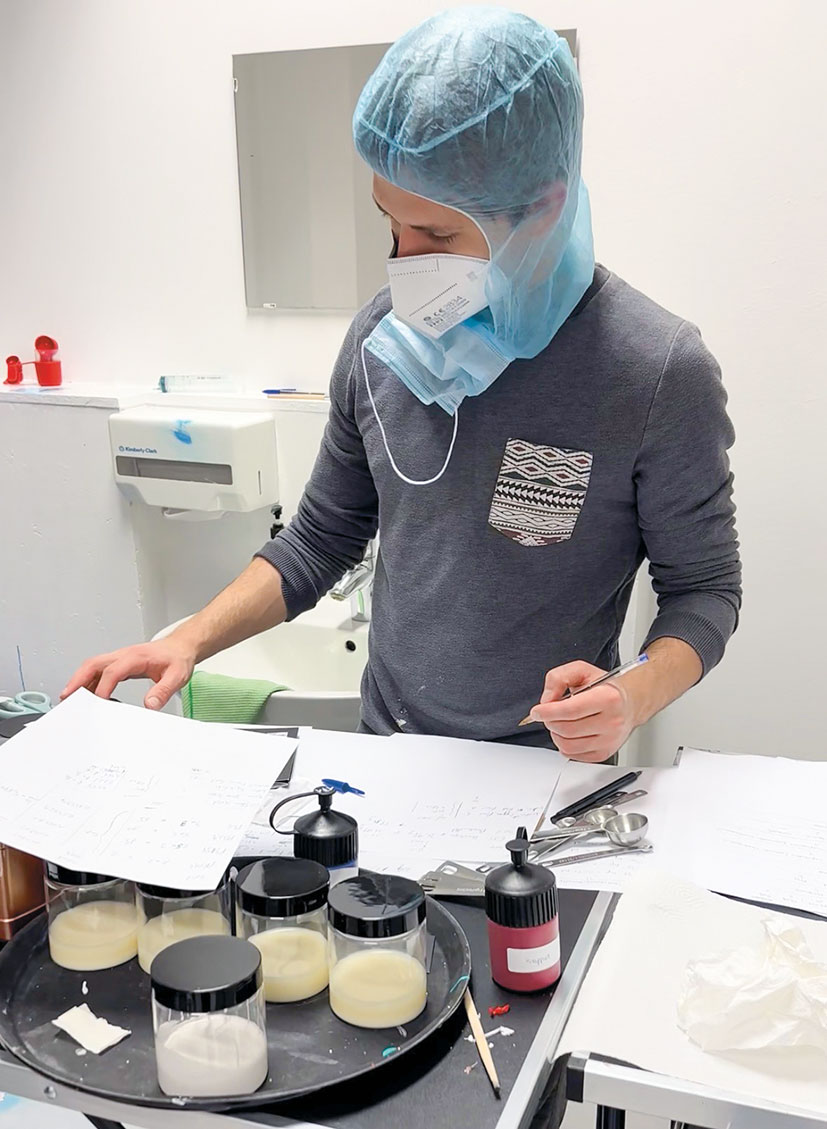 Keller und Garage des Einfamilienhauses in Nüziders wandelten sich innerhalb kürzester Zeit zum Labor, in dem das bestehende Rezept immer weiter verfeinert wurde. Die drei richteten zudem eine Abfüllstation und eine Ecke für den Versand ein. „Sogar im Gang standen überall Farben herum“, lacht Philipp Domenig.