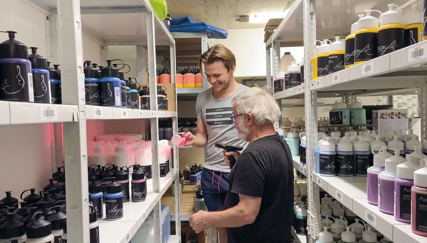 Ihre Leuchtkraft verdanken die Farben aus dem Hause Aquarylic einem hohen Anteil an hochwertigen Pigmenten mit einer im Labor getesteten Lichtechtheit von hundert Jahren, der sie zudem besonders ergiebig macht. Um sicherzustellen, dass die Farben nicht verderben oder zu schimmeln beginnen, kommen die Nüziger um Konservierungsstoffe nicht herum. „Weil die Farben auf Wasserbasis hergestellt sind, wären sie sonst ein Nährboden für Bakterien“, erklärt Philipp Domenig. Er legt jedoch Wert darauf, Konservierungsstoffe so gering wie möglich zu dosieren. Lässt man das Mal-Wasser 24 Stunden stehen, sodass sich die Pigmente am Boden absetzen können, darf es bedenkenlos im Kanalsystem entsorgt werden. Und auch bei der Wahl ihrer Lieferanten achtet das Aquarylic-Team darauf, unnötige Transportwege zu vermeiden.