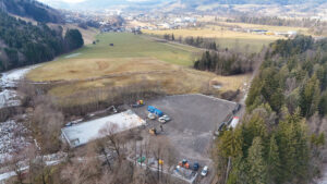 Der Aufwand für die technische Einrichtung ist beträchtlich. „Aber so eine Kompostierung muss man professionell machen“, erklärt Burtscher. Auch die Behörden schauen dazu, dass da nicht herumgepfuscht wird, was beispielsweise massive Geruchsbelästigungen zur Folge haben könnte. Um eine Verunreinigung von Grundwasser zu verhindern, muss die Kompostierfläche wasserdicht asphaltiert sein. Auch eine Lagerhalle für den Kompost ist erforderlich. Diese kann ohne zusätzliche Bodenversiegelung dort errichtet werden, wo früher das Kieswerk stand.